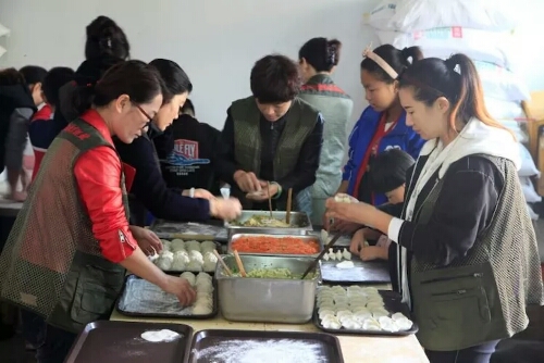 隨后,志愿者們?yōu)槔先苏砹朔块g,中午同老人一起包水餃,共同度過美好的節(jié)日。(新泰市基層委員會)