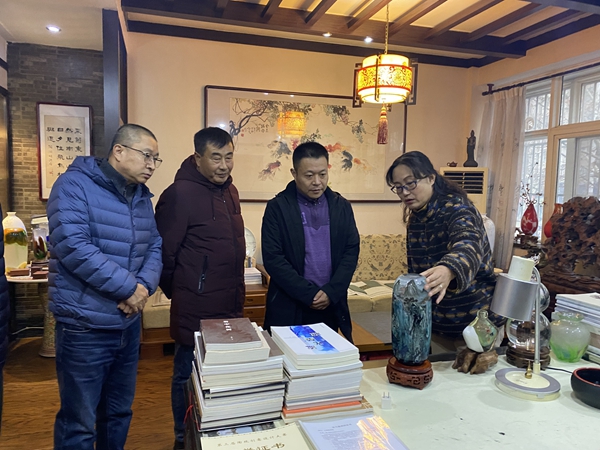 文靜向大家介紹了自己參加進(jìn)博會(huì)和陶博會(huì)的見聞感受,還帶著大家參觀了內(nèi)畫精品展覽館,文靜一邊介紹自己的作品,一邊談到了對內(nèi)畫藝術(shù)的傳承和創(chuàng)新、創(chuàng)作心路歷程,對每一件藏品都如數(shù)家珍。