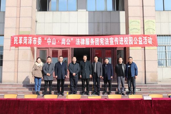 12月4日是我國第八個國家憲法日,當天上午,民革菏澤市委會主委、市衛(wèi)健委二級調(diào)研員趙勝利,民革菏澤市委會委員、社會服務(wù)專委會主任牛忠建帶領(lǐng)“中山·尚公”法律服務(wù)團部分成員來到菏澤學院藥學院開展了憲法宣講進校園活動。菏澤學院科研處處長蔣培紅、菏澤學院藥學院黨委副書記許騰、副教授馮善祥、學工辦主任初漢平參加了本次活動。