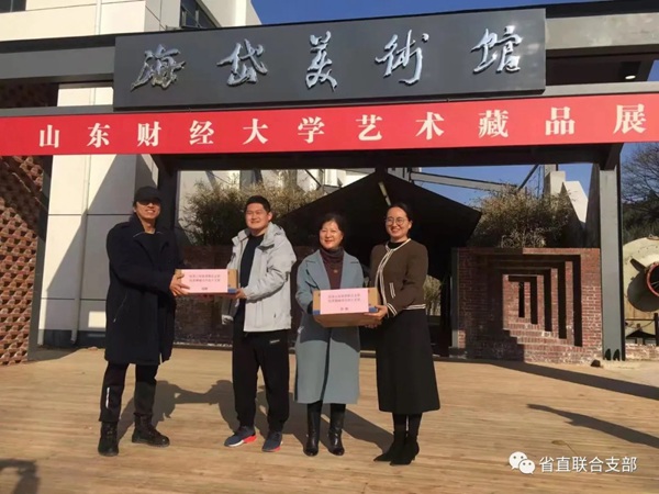 隨后,民革省直聯(lián)合支部與聊城市直十支部向海岱美術館捐贈了口罩、酒精等防疫物品。(省直聯(lián)合支部)