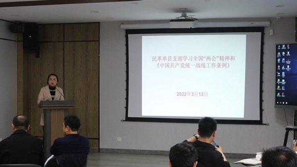 會(huì)上,張永強(qiáng)帶領(lǐng)大家學(xué)習(xí)全國(guó)和縣兩會(huì)會(huì)議精神,對(duì)如何撰寫(xiě)社情民意信息進(jìn)行講解。王春梅為大家詳細(xì)解讀新修訂的《中國(guó)共產(chǎn)黨統(tǒng)一戰(zhàn)線工作條例》。支部副主委王品禮帶領(lǐng)大家深入學(xué)習(xí)中共十九屆六中全會(huì)精神。支部副主委張中華和大家共同學(xué)習(xí)習(xí)近平總書(shū)記關(guān)于統(tǒng)一戰(zhàn)線和人民政協(xié)工作的重要論述。組織委員焦玉州代表支委會(huì)向全體黨員匯報(bào)了支部2021年工作開(kāi)展情況,并對(duì)2022年擬開(kāi)展的工作和活動(dòng)計(jì)劃進(jìn)行說(shuō)明,交由全體黨員討論通過(guò)。三名入黨積極分子從本職工作、志愿加入民革的原由及人生理想等多個(gè)角度向支部黨員作自我介紹。全體黨員對(duì)如何深刻領(lǐng)會(huì)全國(guó)兩會(huì)和《條例》蘊(yùn)含的精神實(shí)質(zhì)和精髓要義進(jìn)行了深入討論并進(jìn)行交流發(fā)言。