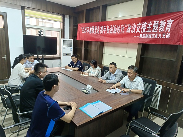 5月22日,民革聊城市直九支部開(kāi)展“矢志不渝跟黨走、攜手奮進(jìn)新時(shí)代”政治交接主題教育?;顒?dòng)由支部主委賈同輝主持。