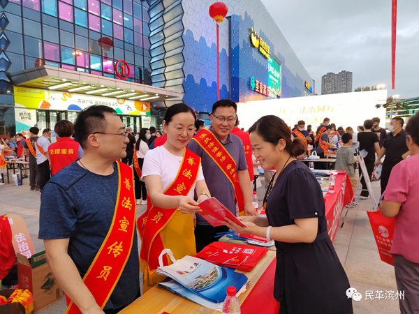 民革濱城區(qū)總支參加啟動儀式,并在現(xiàn)場舉辦了“同心助力·法律進(jìn)社區(qū)”活動。通過發(fā)放宣傳資料、宣傳物品以及現(xiàn)場解答群眾法律問題等方式進(jìn)行了普法宣傳。