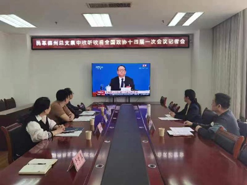 2023年3月5日,民革德州市總支部組織領(lǐng)導(dǎo)班子成員及機(jī)關(guān)工作人員集中收看全國(guó)政協(xié)十四屆一次會(huì)議記者會(huì)。(民革德州市總支部)