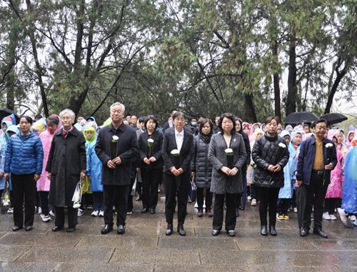 馮玉祥先生親屬、住泰城民革黨員及泰山馮玉祥小學(xué)師生約200余人參加祭掃。(民革泰安市委會)