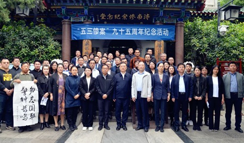 歷史不容忘卻!為紀(jì)念濟(jì)南“五三慘案”95周年,5月3日上午,民革山東省委會、民革濟(jì)南市委會聯(lián)合有關(guān)單位,共同在趵突泉公園“五三慘案”紀(jì)念堂舉行紀(jì)念活動,并組織黨員和入黨積極分子開展愛國主義教育。民革山東省委會副主委、民革濟(jì)南市委會主委王伯芝,民革山東省委會秘書長李振友、二級巡視員莊聿蓮,民革濟(jì)南市委會秘書長倪秀珍,市中區(qū)政協(xié)副主席、民革市中區(qū)總支部主委陳淑平出席活動。民革山東省委會機(jī)關(guān)干部,中共濟(jì)南市委統(tǒng)戰(zhàn)部黨派處干部、民革濟(jì)南市委會機(jī)關(guān)干部,民革黨員及入黨積極分子代表等參加活動。