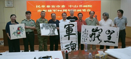 近日,為慶祝中國人民解放軍建軍96周年,民革泰安市委會(huì)組織泰安市中山書畫研究院書畫家到泰安軍分區(qū)總部舉辦書畫筆會(huì)。泰安軍分區(qū)司令員焉壯志、副司令員李巍,民革泰安市委會(huì)副主委劉清廷出席活動(dòng)。
