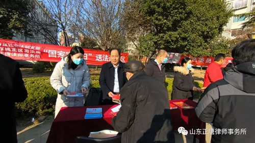12月4日,在第十個(gè)國(guó)家憲法日暨第六個(gè)“憲法宣傳周”來(lái)臨之際, 民革山東省直社會(huì)法制支部聯(lián)合山東正唐律師事務(wù)所、槐蔭區(qū)美里湖街道辦事處在槐蔭區(qū)美里新居開展“國(guó)家憲法日”送法進(jìn)社區(qū)活動(dòng)。民革山東省直社會(huì)法制支部主委、山東正唐律師事務(wù)所主任周桂華等參加活動(dòng)。