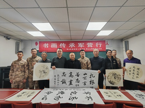 2024年元旦前夕,民革淄博市博山區(qū)基層委員會聯(lián)合博山區(qū)退役軍人事務(wù)局、博山心陶然藝術(shù)學(xué)校,到駐博部隊(duì)舉辦“書畫傳承進(jìn)軍營”活動。民革博山區(qū)基層委員會主委侯念湖及部分班子成員參加。