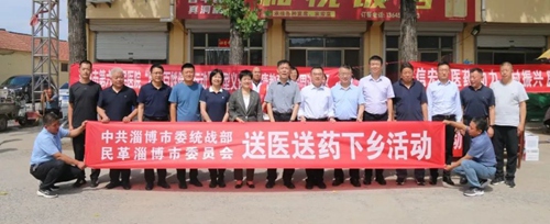 5月29日,中共淄博市委統(tǒng)戰(zhàn)部、民革淄博市委會(huì)到沂源縣悅莊鎮(zhèn)唐家官莊村開(kāi)展送醫(yī)送藥暨書畫下鄉(xiāng)活動(dòng)。淄博市政協(xié)副主席、民革淄博市委會(huì)主委王懷賓出席,中共淄博市委統(tǒng)戰(zhàn)部分管日常工作的副部長(zhǎng)、淄博市僑辦主任趙晨光,民革淄博市委會(huì)副主委趙西敏、張超參加。