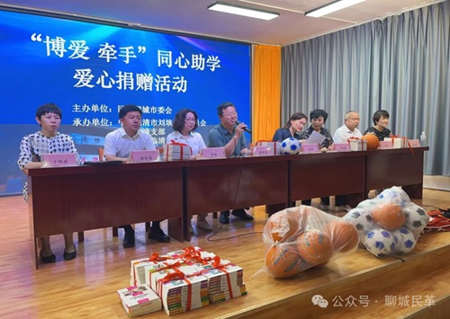 5月31日下午,在國際兒童節(jié)到來之際,民革聊城市委會、民革臨清支部聯(lián)合新華保險臨清支公司走進臨清市劉垓子鎮(zhèn)中心小學(xué),開展“博愛牽手”同心助學(xué)愛心捐贈活動。民革聊城市委會主委唐明貴、副主委李娟,臨清市政協(xié)副主席趙謙,劉垓子鎮(zhèn)黨委書記都善超等參加活動。