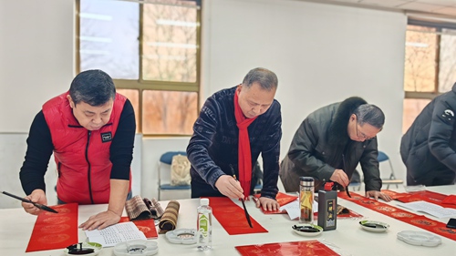 活動現(xiàn)場,書畫家們揮毫潑墨、筆走龍蛇,為企業(yè)職工、臺灣同胞送上了春聯(lián)和福字,以蒼勁有力的筆法傳遞著對兩岸情誼和新春的美好祝愿。(民革德州市總支部)