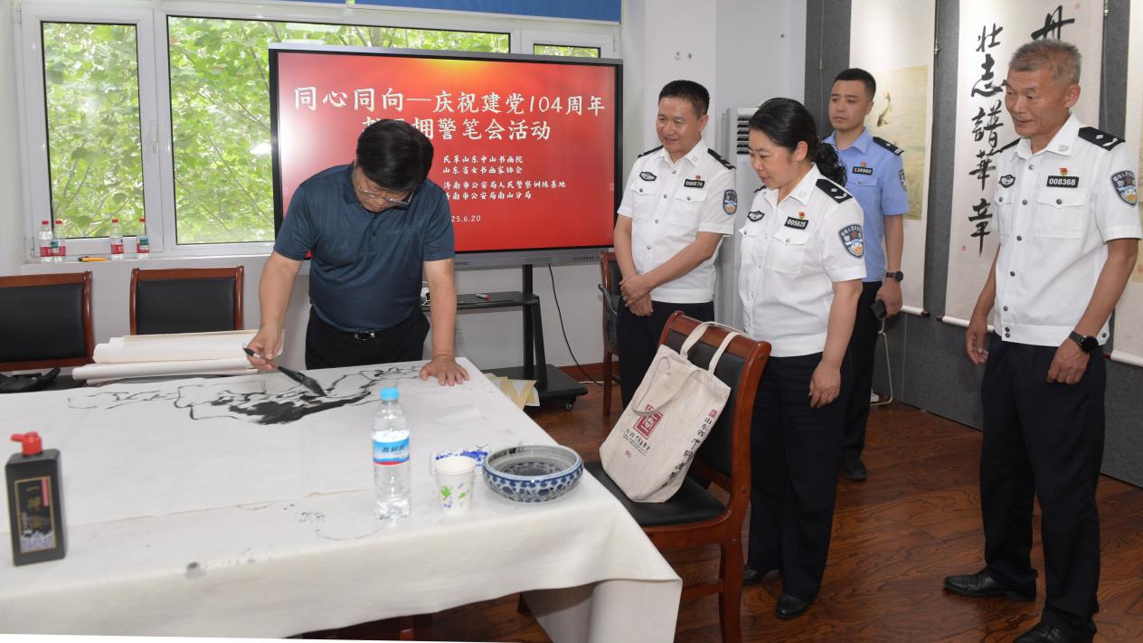 為慶祝中國(guó)共產(chǎn)黨成立104周年,進(jìn)一步增進(jìn)警民關(guān)系,6月20日下午,山東中山書(shū)畫(huà)院、山東省女書(shū)畫(huà)家協(xié)會(huì)攜手走進(jìn)濟(jì)南市公安局人民警察訓(xùn)練基地開(kāi)展“同心同向 共慶‘七一’”書(shū)畫(huà)擁警筆會(huì)活動(dòng)。