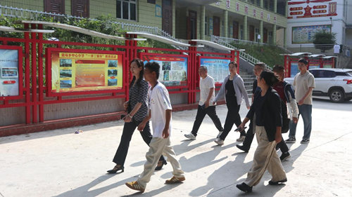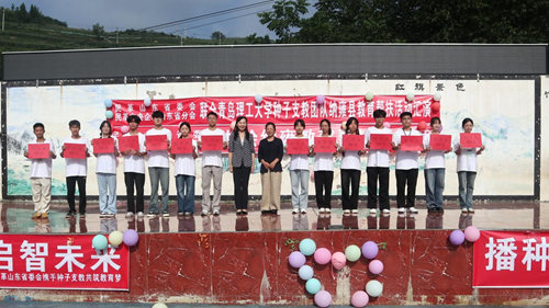 在兩鄉(xiāng)中心學(xué)校,工作組觀看了青島理工大學(xué)種子支教團(tuán)組織的支教匯演,為支教大學(xué)生志愿者送去1.5萬元慰問金。在左鳩戛鄉(xiāng)興文村,工作組考察了劉興文故居修繕等先期幫扶項(xiàng)目,達(dá)成共建廣場幼兒書屋的意向,走訪貧困學(xué)生家庭并送上慰問品。